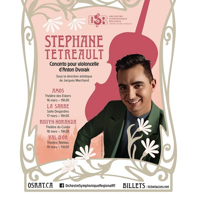 L'Orchestre symphonique régional présente sa grande tournée printanière mettant en vedette Stéphane Tétreault qui interprétera le Concerto pour violoncelle d'Anton Dvorak