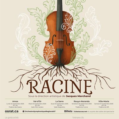 l’Ensemble Aiguebelle (Ensemble à cordes de l'OSR) présente Racine, une série de concerts dans les cinq grandes villes de la région
